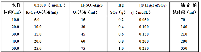 在強酸性溶液中,一定量的重鉻酸鉀氧化水樣中還原性物質,過量的重鉻酸鉀以試亞鐵靈作指示劑、用硫酸亞鐵銨溶液回滴。根據用量算出水樣中還原性物質消耗氧的量。