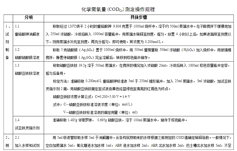 COD化驗(yàn)標(biāo)準(zhǔn)操作規(guī)程簡(jiǎn)述