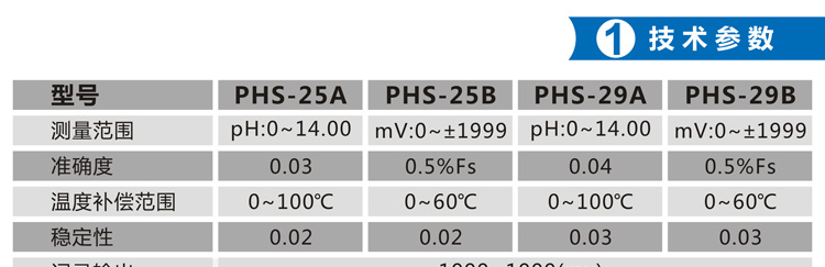 (1) 測量范圍:pH:(0.00~14.00) pH;mV:(0~±1400)mV,(自動極性顯示)