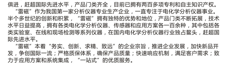 ,適用于工礦、研究院所的化驗室取樣測定水溶液的酸度(pH)值和測量電極電位(mV)值,本儀器體積小,攜帶方便,特別適合于在無交流電源的地方作水溶液的酸度測定。